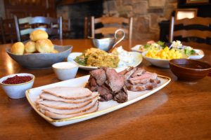 This all-you-can-eat platter includes shaved prime rib, roasted turkey, carved pork, mashed potatoes, vegetables, stuffing, macaroni and cheese, and a new dessert.