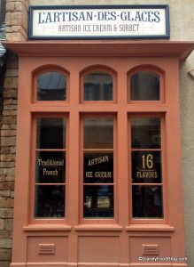 We first told you last month about the new ice cream and sorbet shop opening in Epcot’s France in the in the former location of the Boulangerie Patisserie. Today we have good news to share – L’Artisan des Glaces Sorbet and Ice Cream Shop is open!