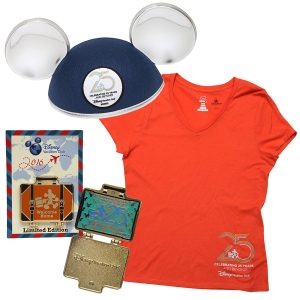 Other commemorative items including a Disney ear hat, apparel, a ladies’ tee with the anniversary logo, a Tommy Bahama shirt, and a limited edition pin. The pin will have an edition size of just 1,500 and will be released in August.