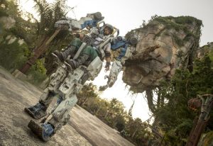 According to Disney, “The giant walking suit was designed with articulated hands and a shoulder span of more than five feet. It also bears claw marks and battle scars from a Thanator – an alpha predator on Pandora.”