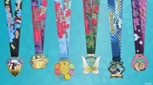 The Never Land 5K medal features Peter Pan and Captain Hook and the Tinker Bell 10K medal features Tink and her Pixie Hollow friends. Runners who finish the Pixie Dust Challenge – completing the 10K and Half Marathon – will earn a colorful finisher’s medal.