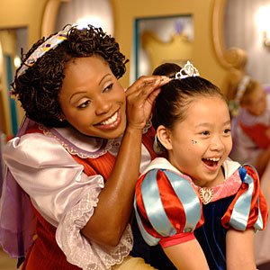 The Coach Package, which starts at $49.95 plus tax, includes shimmering makeup and hairstyling. The second package, dubbed the Crown Package, includes both hairstyling and shimmering makeup, as well as nail color application, and starts at $54.95 plus tax. Finally, the Castle Package includes everything from the Crown Package, as well as photographs and a complete costume of your choice plus accessories. This package starts at $189.95 plus tax. Guests of the salon may also add the optional Imaging Package to either the Coach or the Crown packages, which includes one 6″ x 8″ photograph and four 4″ x 6″ photos in a special Princess-themed photo holder.