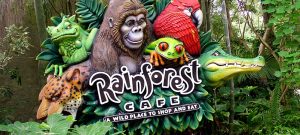 The rainforest-themed restaurant also features a unique dining experience and decor, including talking animals that recite rainforest facts and simulated thunder and rainstorms.