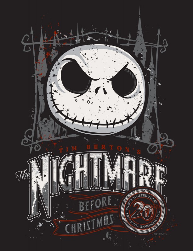 From now until next Monday, November 4, fans of Jack Skellington and his crew of silly and spooky friends can find an exclusive 20th Anniversary T-shirt at the Disney Parks online store. Fans can also purchase a D-Tech on Demand case for their iPhone 5/5S featuring the 20th Anniversary artwork. Film fans looking to order these items can do so here. Orders will take six-to-eight weeks to arrive.