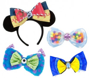 Apparel items include pullover sweaters, T-shirts, and baseball caps featuring Pixar characters. Guests will also find themed headwear including ears and headbands inspired by popular Pixar characters.