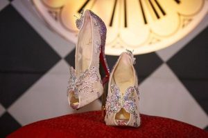 Now, the designer has unveiled his version of the iconic glass slippers from Disney’s fairy tale. The limited edition red-soled heels are adorned in lace and covered with swarovski crystals and sparkling butterfly accents and were revealed on July 4 in Paris.