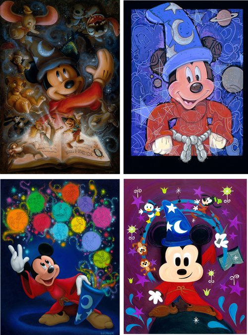 This year guests will find the Signature Collection from the Disney Design Group Artists Natalie Kennedy, Alex Maher, Randy Noble, and Darren Wilson. The pieces created by these artists bring Sorcerer Mickey to life, and are available in deluxe print format or via Art on Demand.