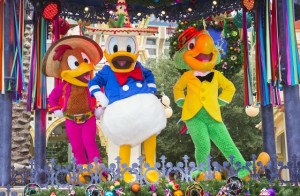 The Paradise Garden is decorated with holly, banners, and Latino cultural icons. The street party features the Three Caballeros on a holiday float, Brazilian samba dancers, drummers, and flag bearers. Guests can also enjoy arts and crafts and storytelling.