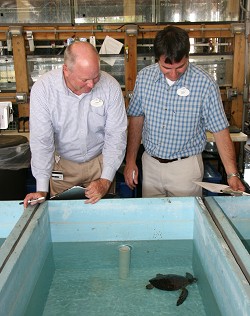 Several weeks ago we reported about two endangered sea turtles with pneumonia that were relocated from the Institute for Marine Mammal Studies in Gulfport, Mississippi to Walt Disney World. The turtles were sent to Disney World’s animal care team for medical attention & rehabilitation in an effort to make room at the Mississippi Institute for sea turtles impacted by the Gulf oil spill. As those turtles are being nurtured back to health by Disney animal care experts, new oil spill affected turtles have arrived.