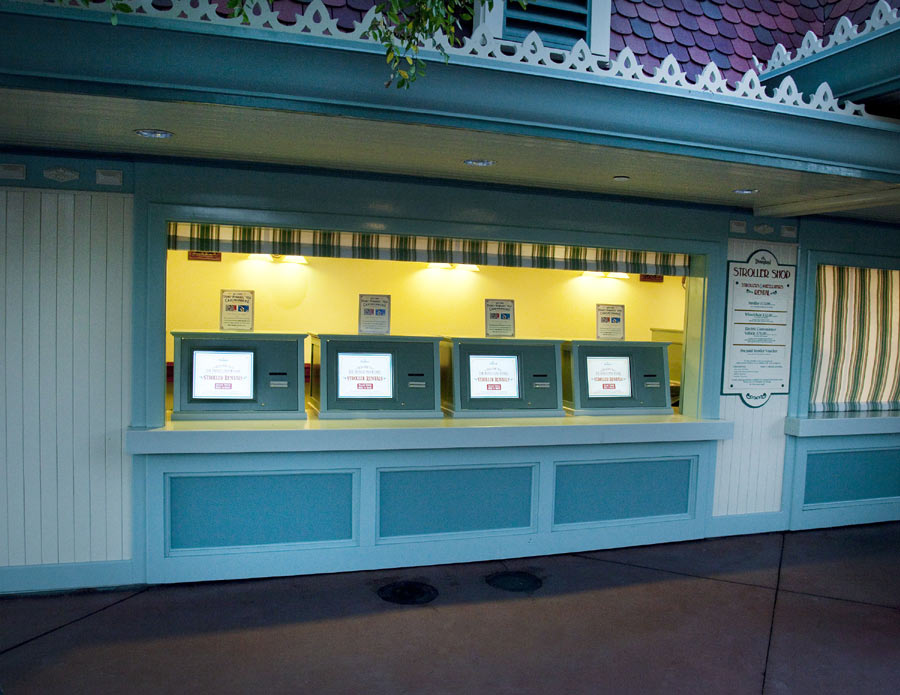 In an attempt to streamline the popular stroller rental service at Disneyland four new self-service kiosks have been added on the Esplanade; in addition to the staffed wheelchair & stroller rental counter. The new kiosks will allow guests to skip long lines & use their credit card to reserve strollers for up to six days. Located right outside the Disneyland Park entrance the kiosks will give guests the option to complete their transaction in either English or Spanish.