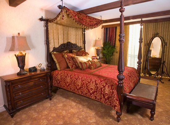 Featuring old world carpeting, dark-stained hardwood floors, a custom doorbell that sings “Yo Ho, Yo Ho, A Pirate’s Life for Me!,” exposed wooden ceiling beams, Spanish colonial-style furnishings, wet bar, plasma TVs and surround sound stereo system, decorative artwork inspired by elements of the Pirates of the Caribbean films and attractions, a replica of Captain Jack Sparrow’s revolver, rare pirate figurines, a vintage canopied four-poster bed with cast iron lighting fixtures, and lots of surprise extras!