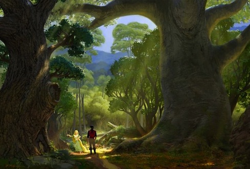 In this version of the film, the “hero” (Flynn Rider) is actually a bandit! Rapunzel and Flynn proceed to “The two embark on a romantic action-comedy adventure across a mysterious landscape full of ridiculous creatures and deadly turns.”