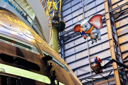 Check out some pictures of Dumbo flying on to the ship’s stern and Timothy, courtesy of the Disney Parks Blog: