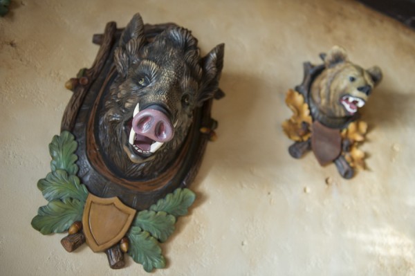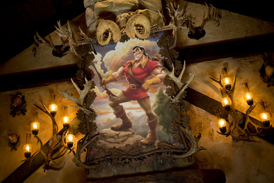Once inside this warm, rustic spot, this large portrait of Gaston dominates the area over the hearth.