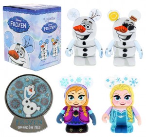 Vinylamtion is releasing two limited edition figures today – November 22 – at the D Street locations in Florida and California. The two-figure limited edition set features Anna and Elsa has an edition size of 1,500. There is also a 3-inch Olaf being sold as a Vinylmation “Eachz.” It comes in a mystery box with an edition size of 2,500. Olaf in the summer is the rare figure, while Olaf in the winter is the more common figure.
