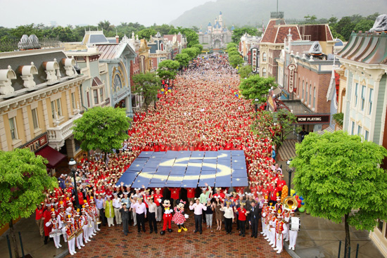 Yesterday, over 4,000 people gathered on Main Street for an anniversary photo op in Hong Kong Disneyland to celebrate the park’s 5th birthday. Popular with locals, a recent survey of residents found that two-thirds of those surveyed have visited the park since its opening in 2005, and on average have visited about three times. Celebrating local patrons, international tourists, and the spirit of Disneyland Hong Kong great memories were made on the anniversary with a party to remember.