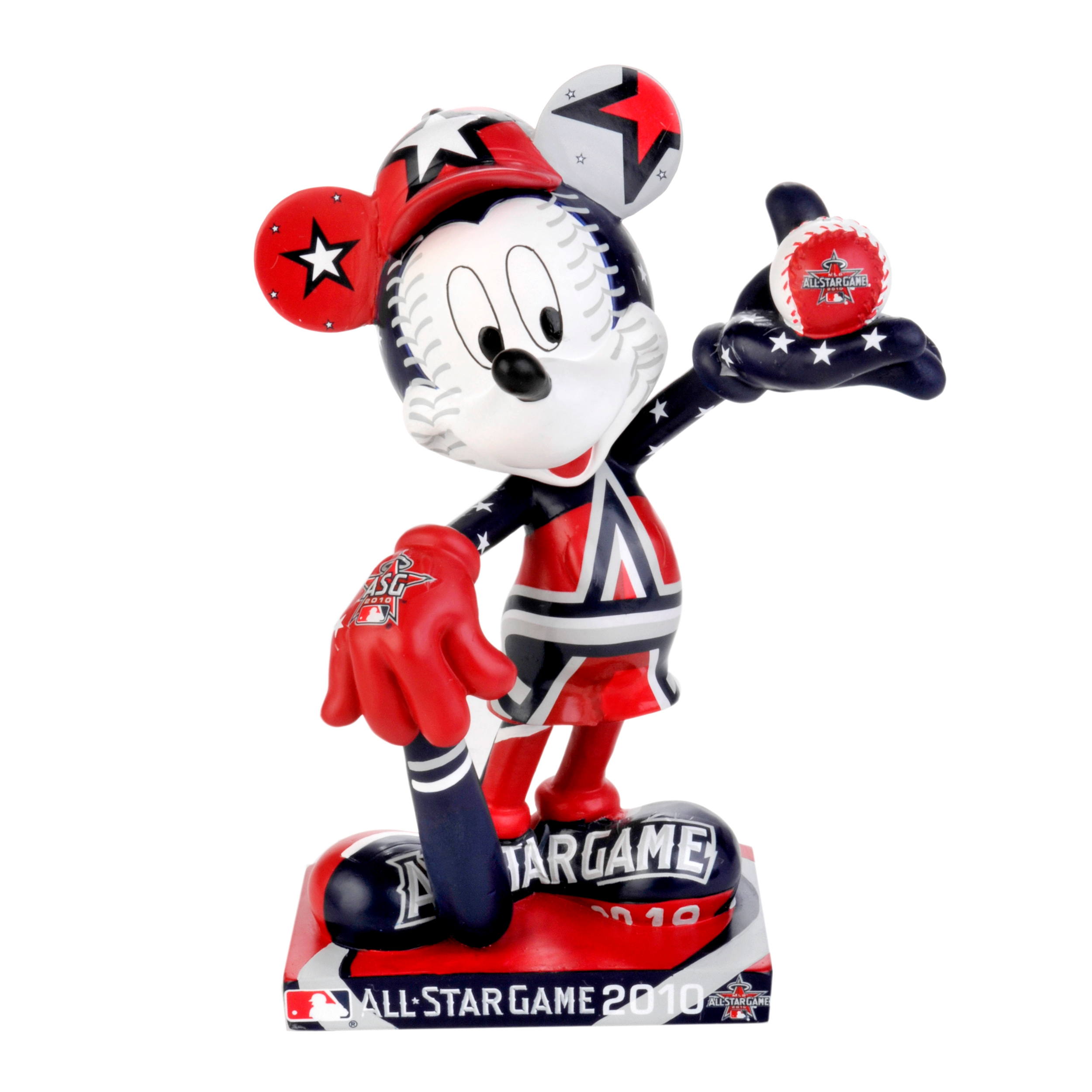 In celebration of the upcoming 2010 Major League Baseball All-Star festivities in Anaheim, the MLB and Disney Consumer Products have began to disperse 36 oversized Mickey Mouse statues across Southern California in high-profile locations. Each statue is decorated to represent each of the 30 Major League clubs as well as four All-Star designs, and an American League and a National League design. Standing 7 & 1/2 feet tall and weighing 989 pounds each the Mickey icons are sure to be popular tourist photo spots this summer.