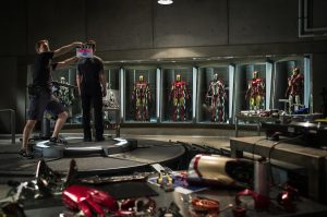 Today, Marvel released the first image from the film’s production, which features Tony Stark (Robert Downey, Jr.) standing in front of a collection of various suits of armor worn by Stark in his role as Iron Man. The new film will continue the adventures of Stark, the billionaire inventor, and his superhero identity, Iron Man. Returning with Downey Jr. for the film will be Gwyneth Paltrow as Pepper Potts, Don Cheadle as James “Rhodey” Rhodes and Jon Favreau as Happy Hogan.