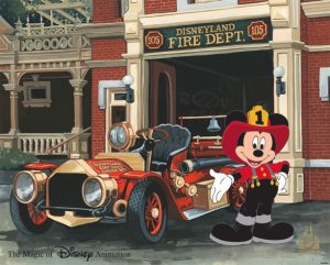 Fans of Ink & Paint Cel works can stop by Disneyana on May 23 to meet the artists behind the latest piece featuring Mickey Mouse in his firefighter best standing in front of the Disneyland Fire Department on Main Street U.S.A.