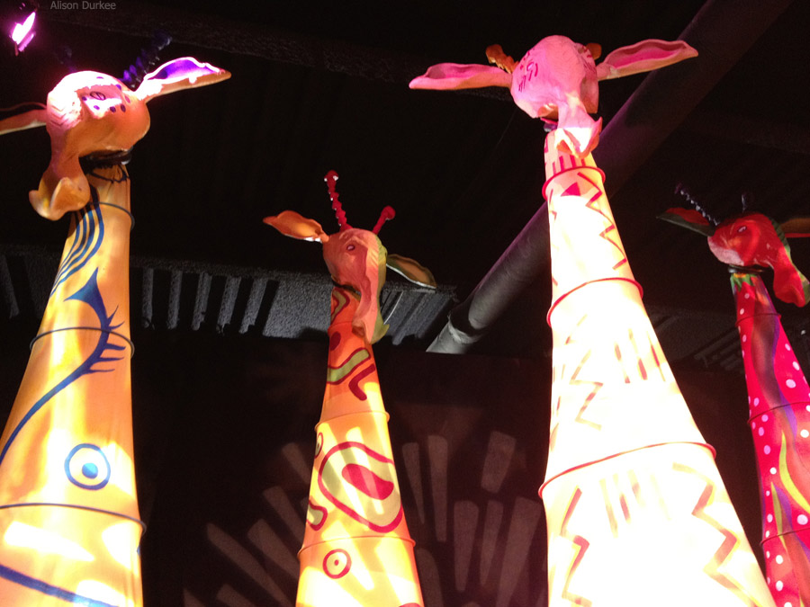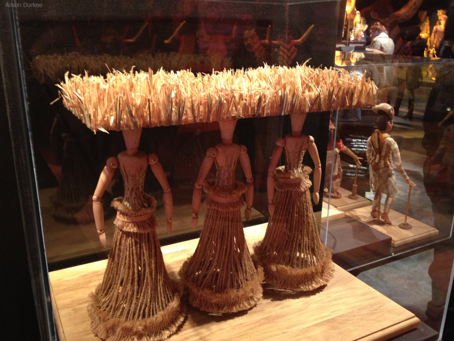 In addition to looking at these amazing pieces up close, visitors also learn more about the show’s design from Disney Theatrical Productions representatives, who are on hand throughout the exhibit to explain how different puppets work and some background information about Julie Taymor’s process in designing the show. Interactive touch screens are also available that give even more insight into these amazing works of art.