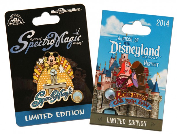 Returning next year is the monthly “Piece of Disney History” collection. This collection was first introduced in 2005 and each limited edition pin contains small pieces of items from attractions or shows.