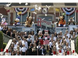 On July 17th, 2010 guests lined up outside the gates of Disneyland, before park opening, in hopes of being one of the first people through the turnstiles on Disneyland’s 55th anniversary. Coming together with guests from all over the world, cast members of all ranks, and a menagerie of Disney characters the park paid tribute to Walt’s dream & to the fanfare of the opening day 55 years earlier. A ceremony with a chorus of children, white doves, and a speech given by George Kalogridis, President of the Disneyland Resort, highlighted the day.