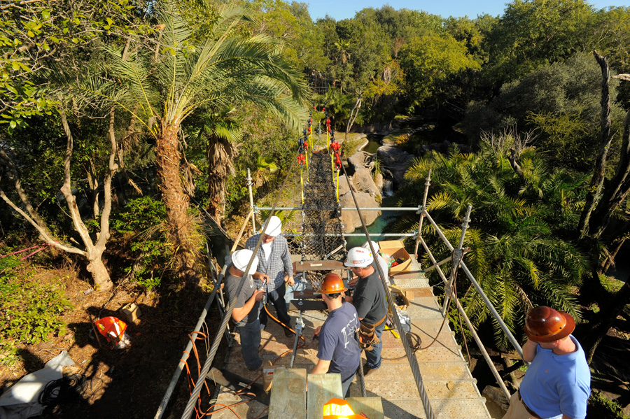 While the hippos were up-close-and-personal and absolutely phenomenal, my absolute favorite part of the tour came next. We climbed up a tower and again hooked ourselves into an overhead safety system. Then, we each got to walk across two rope bridges. Not just any bridges, hold on to your hats and cameras (literally): the bridges were 30 feet above the ground, and on the ground – get this – were the crocodiles. We walked directly over their heads. The view from the bridges was amazing – looking both up and directly down – and one of the crocs began to snap at another as I was immediately over them. For some reason, I kept thinking about Captain Hook at that point… but I heard no tell-tale tick-tock as I finished my jaunt across the bridges.