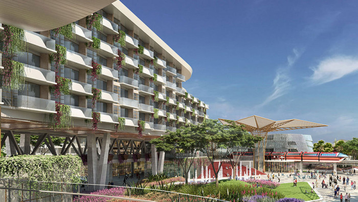 This new hotel will be connected to the other Disneyland hotels by walkways and gardens. It is expected to open in 2021.