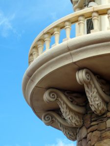 The castle has a definite Mediterranean-style design, and will feature a Spanish-tile roof and an “E” monogram to pay homage to the castle’s royal resident. The gorgeous balconies atop the towers will feature maritime-inspired decor, including seaweed support beams. To further the nautical design, the ground level features stunning hand-painted artwork on the walls depicting a perilous sea journey.