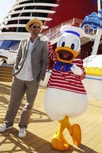Jennifer Hudson posed in the ship’s beautiful atrium lobby, after christening the ship earlier in the day on Wednesday. And as the voyage got underway, photographers caught up with John Stamos posing with Donald Duck, while Marlee Matlin flashed “I love you” in sign language, accompanied by Donald’s Main Squeeze, Daisy. Celebrity media personalities like Sam Champion of “Good Morning America,” Whoopi Goldberg of “The View,” and popular travel personality Samantha Brown were also on board.