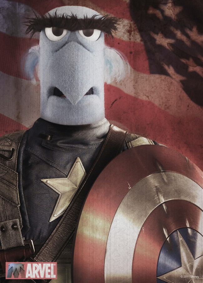 In the past few months, we’ve seen Disney promote their upcoming film The Muppets by parodying some of the summer’s blockbuster movies, including The Hangover Part II and The Green Lantern. This week brought another instance of these hilarious cross-overs, with the release of this Captain America parody poster. The poster perfectly combines the ever-patriotic Sam Eagle and the newly released superhero film, produced by Disney-owned Marvel Studios. In a smart cross-promotional move for the two films, Sam reminds us that not heading to the movie theater to see these films would be distinctly unpatriotic.
