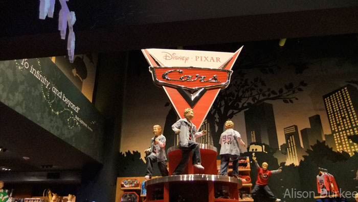 Making your way up the store’s very tall elevator, you arrive at the second floor, which is a much grander version of Disney Store’s new “Imagination Park” concept. The floor features various areas that each revolve around a different Disney movie or theme. There is an area for Tangled merchandise, Toy Story merchandise, the Marvel characters, and Phineas and Ferb, among others. For fans of the movie “Cars,” there is a special RideMakerz area that allows children to create their own custom cars.
