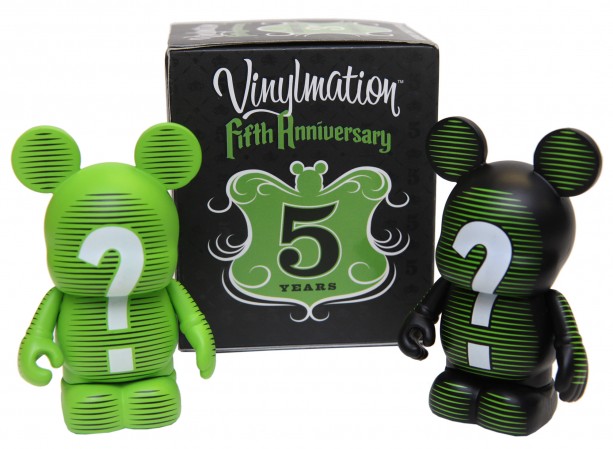 The fifth anniversary figure comes in green or black. There are 900 black Vinylmation figures and only 100 of the green version.