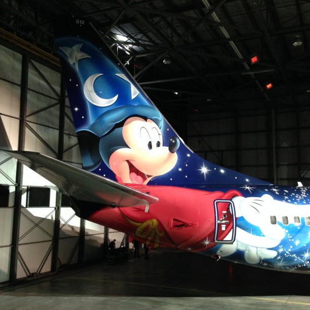 It’s a bird! It’s a plane! It’s Sorcerer Mickey on the tail of the “Magic Plane” from WestJet.