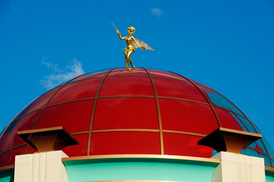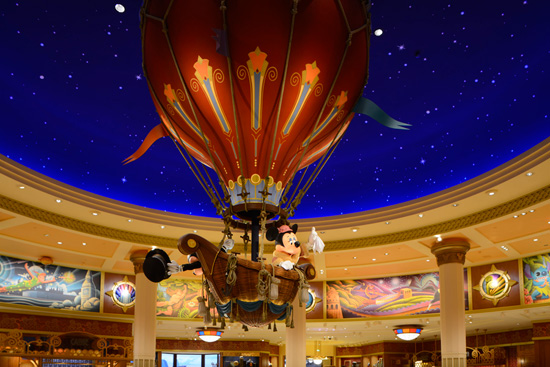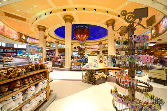 The 15,000 square foot store is decorated in an Art Deco style, and features a large selection of souvenirs. The outside of the shop features eight bas-relief statues of Disney characters and the Eiffel Tower, as well as a rotating dome roof with a statue of Tinker Bell gilded in gold leaf. Inside, the elaborately themed store features a series of murals and a centerpiece of a hot air balloon with Mickey Mouse, Minnie Mouse, and Pluto inside. The new store marks the third theme park location for World of Disney, with stores currently operating in both the Disneyland Resort and Walt Disney World.