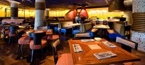 Located near the pool area, The Mara offers a fast, casual dining experience serving an array of foods to choose from. Breakfast, lunch and dinner selections are offered, including soups, salads, flatbreads, chicken and beef dishes, desserts and drinks. The “Grab and Go” market offers a selection of cold beverages and snacks, such as granola