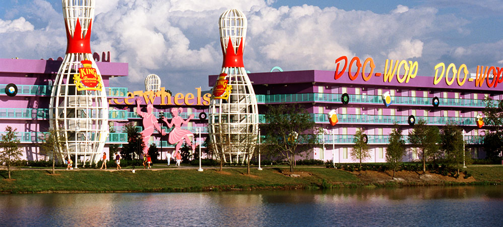 With it’s larger-than-life iconic statues, themed areas and a modest selection of dining and retail establishments as well as recreational opportunities, Disney’s Pop Century Resort is perfect for families or anyone who wants a bit of the Disney magic.