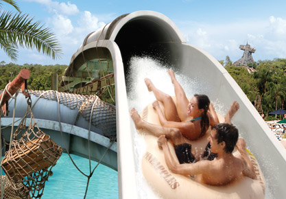 Surf lessons are also available to visitors before the park opens, and experienced surfers have the option of booking private surf sessions as well. For a more relaxing way to enjoy the park, guests can catch a ride on Castaway Creak, a lazy stream that allows guests to take a leisurely raft ride around the water park. Finally, guests can take a break on Sandy White Beach, a a semi-secluded area with lounge chairs, umbrellas and hammocks for those guests who want to get away from the hustle and bustle of the water park.